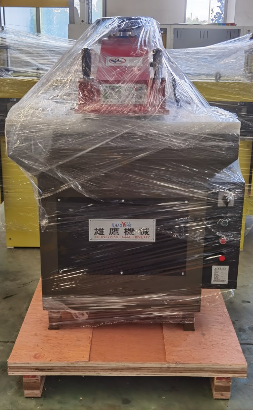 2023年8月31日,雄鷹精密機械公司生產(chǎn)的XYJ-2C/18液壓擺臂裁斷機1臺出口烏干達。